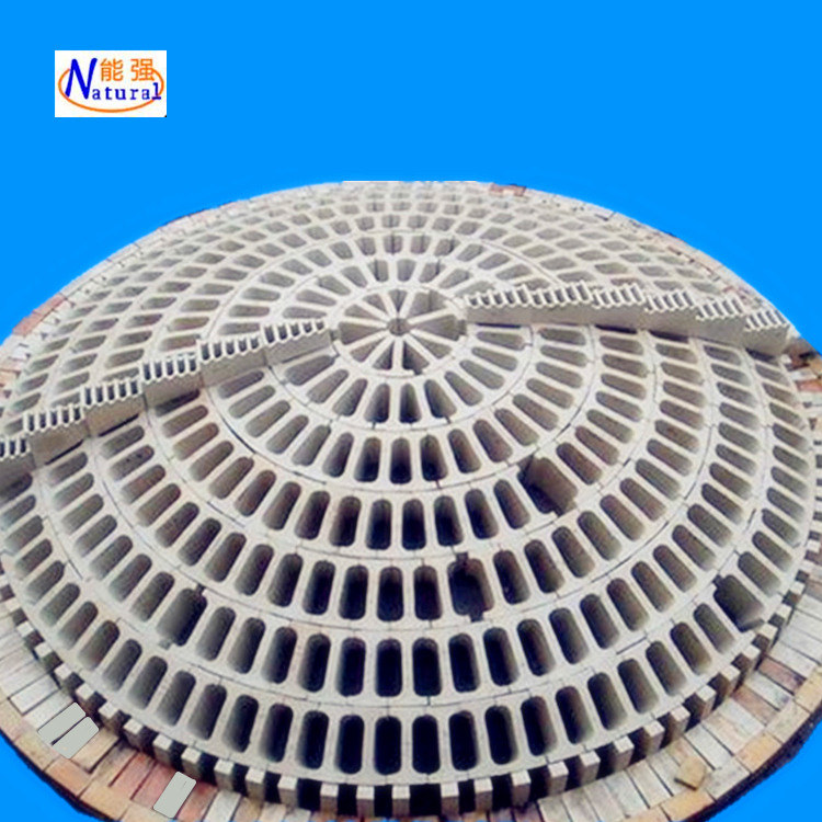 布?xì)獯u:是雙層耐酸陶瓷球拱的上部構(gòu)件,磚體呈格柵狀,頂部有凹槽,環(huán)形布置。